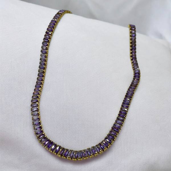 Kολιέ από ανοξείδωτο ατσάλι με Μωβ πέτρες κρυστάλλου-K-20435