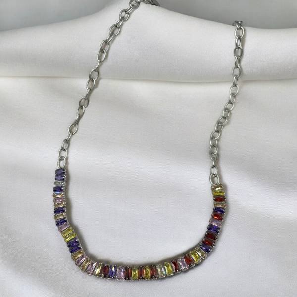 Kολιέ από ανοξείδωτο ατσάλι με χρωματιστές πέτρες κρυστάλλου-K-