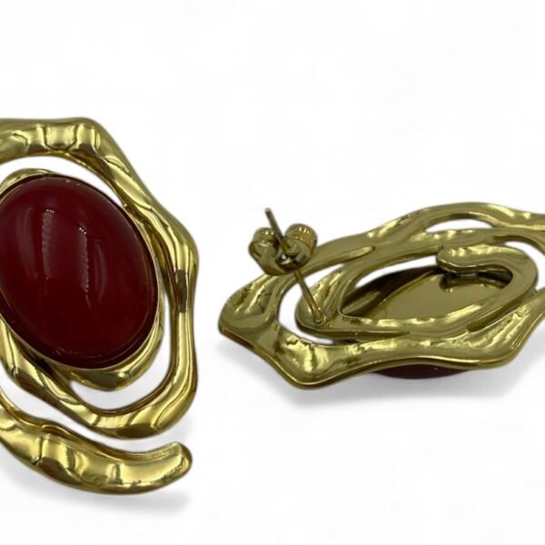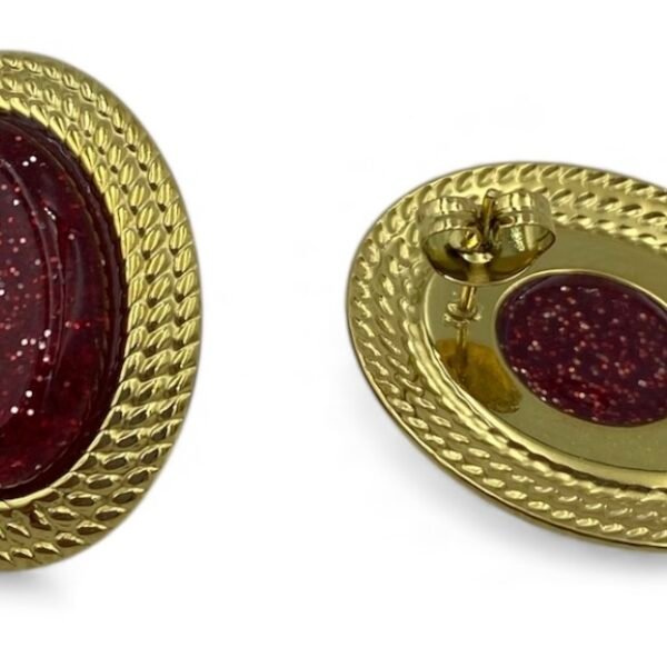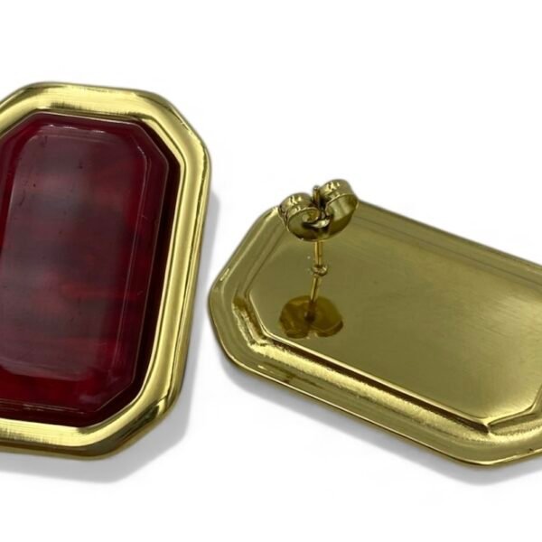 Σκουλαρίκια ατσάλινα κρεμαστά κόκκινα χρώμα χρυσό-SK-