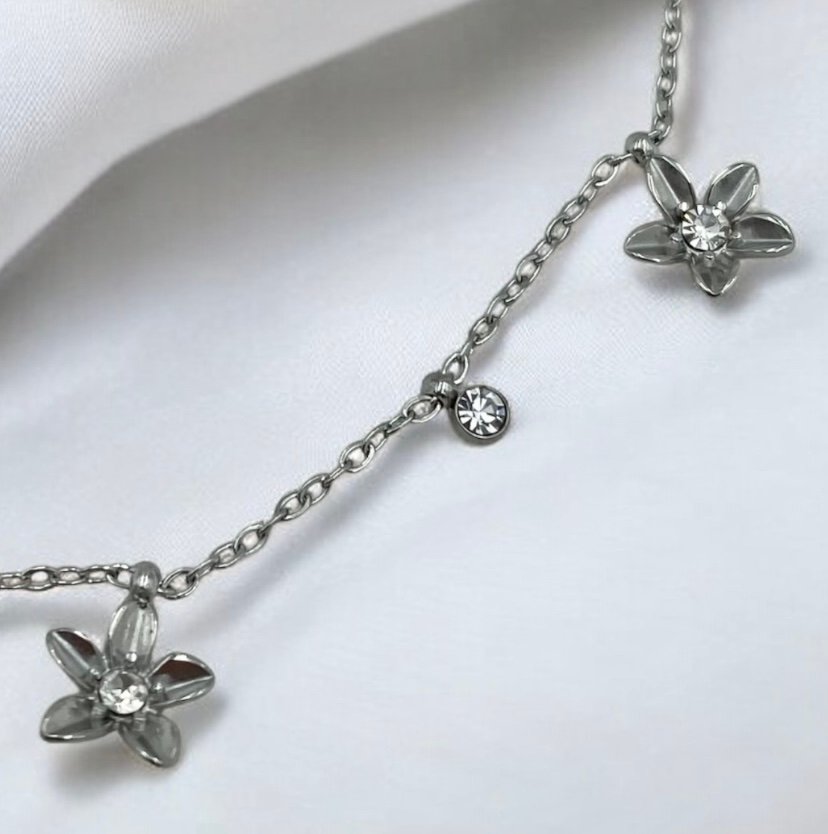 Βραχιόλι λουλουδάκια από ανοξείδωτο ατσάλι με ζιργκον χρώμα ασημί-BR-385