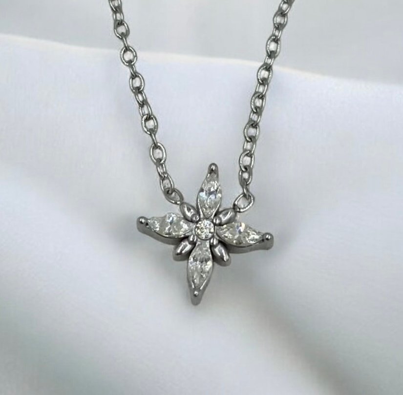 Κολιέ λουλουδάκι από ανοξείδωτο ατσάλι χρώμα ασημί-K-662
