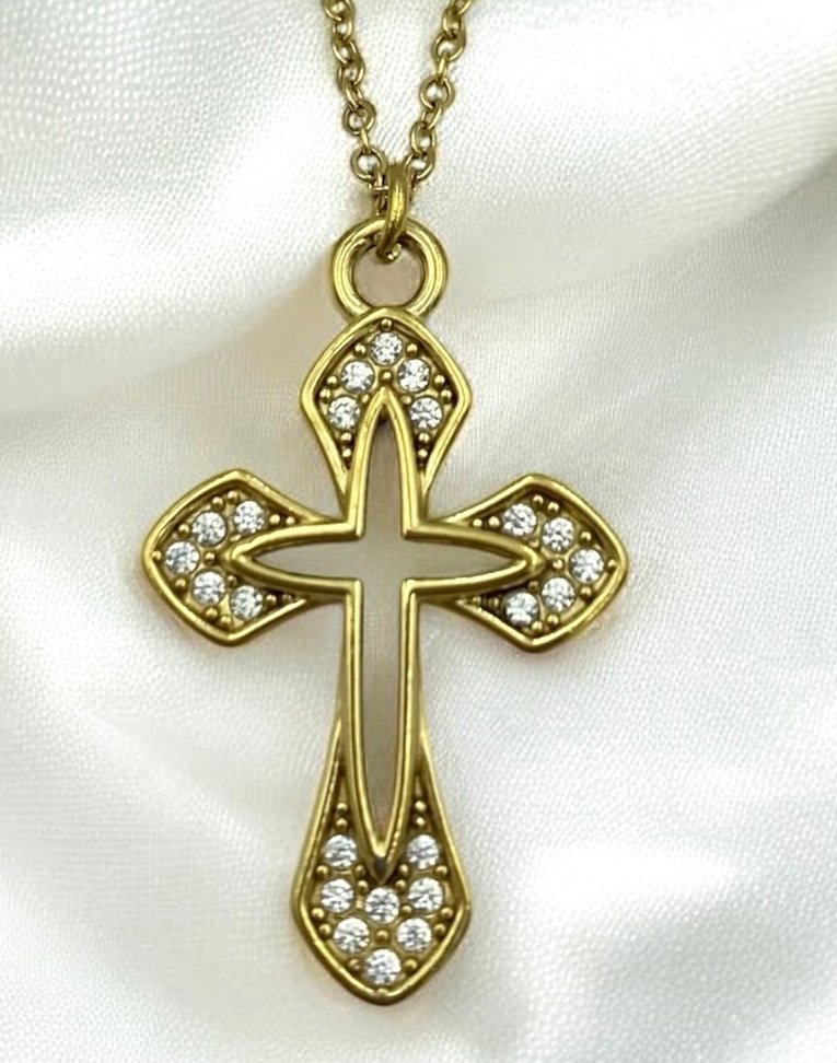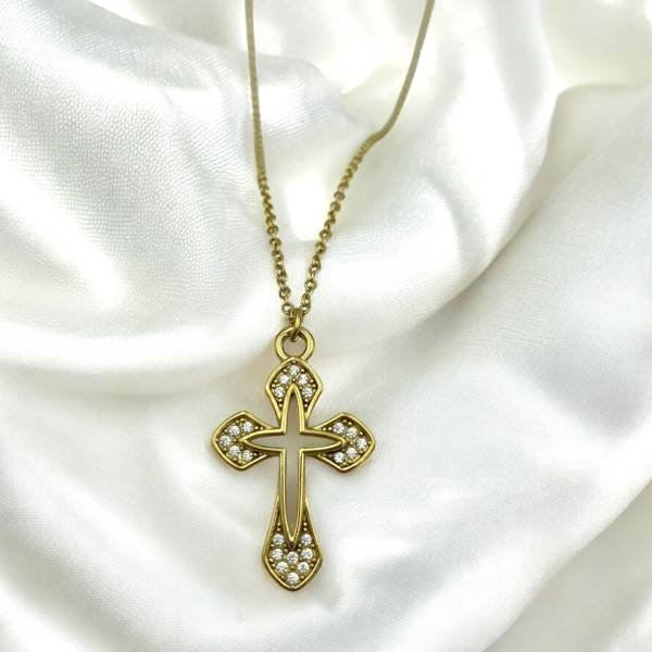 Κολιέ Σταυρός από ανοξείδωτο ατσάλι με ζιργκον xρώμα χρυσό-Κ-690