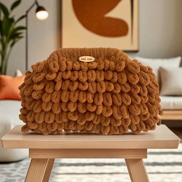 Χειροποίητη πλεκτή τσάντα Puffy χρώμα Καφέ-PL-116-321