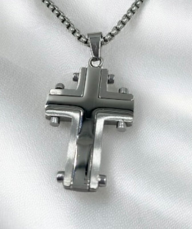 Κολιέ Αντρικός Σταυρός από ανοξείδωτο ατσάλι xρώμα ασημί-ST-43