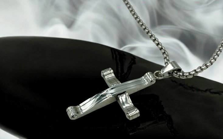 Κολιέ Αντρικός Σταυρός από ανοξείδωτο ατσάλι xρώμα ασημί-ST-40