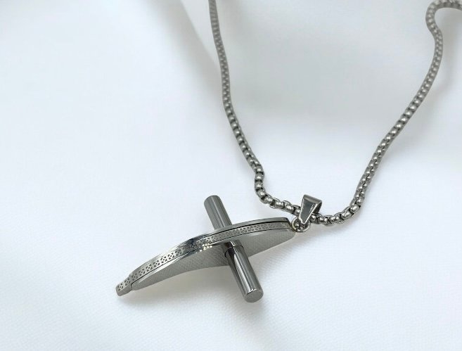 Κολιέ Αντρικός Σταυρός από ανοξείδωτο ατσάλι xρώμα ασημί-ST-46