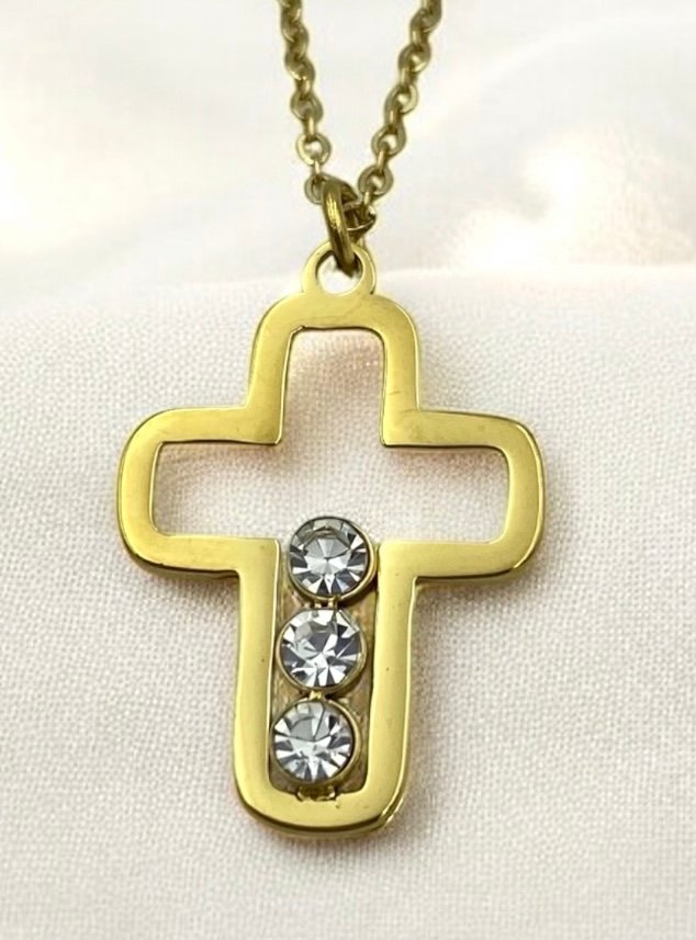 Κολιέ Σταυρός από ανοξείδωτο ατσάλι με ζιργκον xρώμα χρυσό-Κ-697