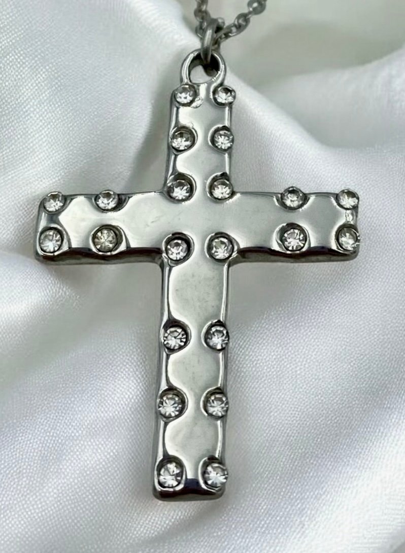 Κολιέ Σταυρός από ανοξείδωτο ατσάλι με ζιργκον χρώμα ασημί-K-344