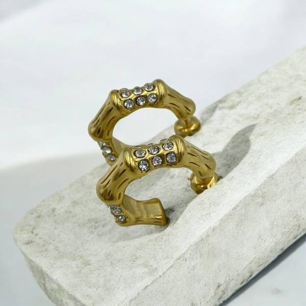 Σκουλαρίκια κρίκος ατσάλινα με ζιγκον χρώμα χρυσό-SK-786