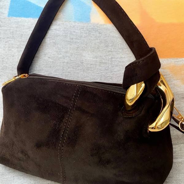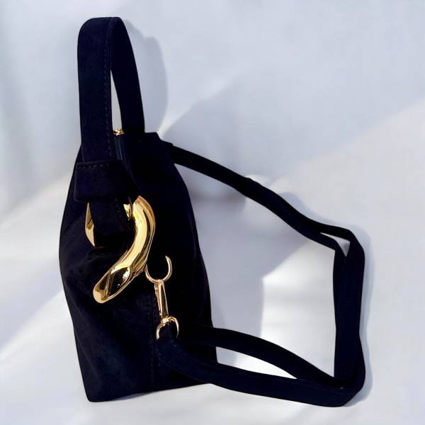 Τσάντα χειρός και χιαστί suede χρώμα μαύρο-TS-1190