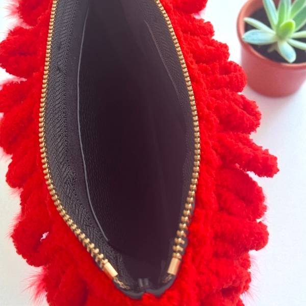 Χειροποίητη πλεκτή τσάντα φάκελος puffy χρώμα Κόκκινο-PL-132-106