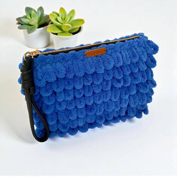 Χειροποίητη πλεκτή τσάντα φάκελος puffy χρώμα Μπλε-PL-132-141