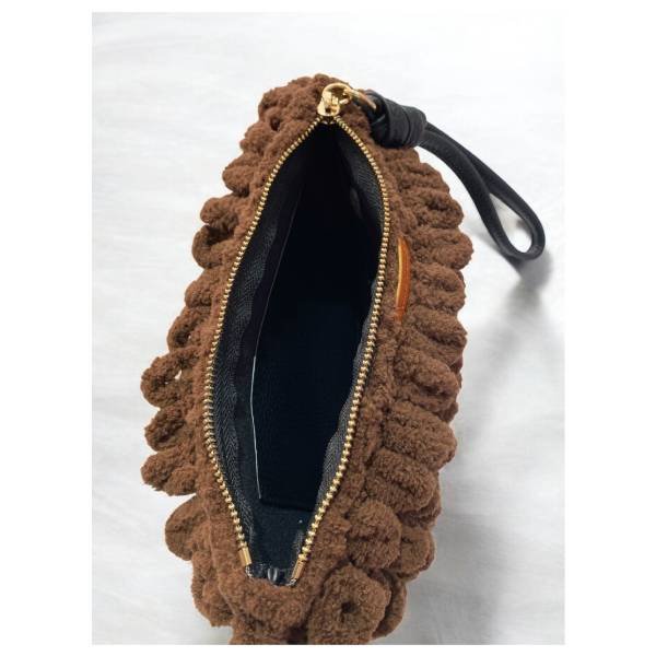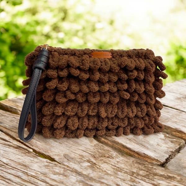 Χειροποίητη πλεκτή τσάντα φάκελος puffy χρώμα Καφέ σκούρο-PL-132-153