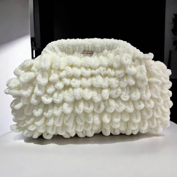 Χειροποίητη πλεκτή τσάντα φάκελος puffy 30x22cm χρώμα Μπεζ-PL-118-599