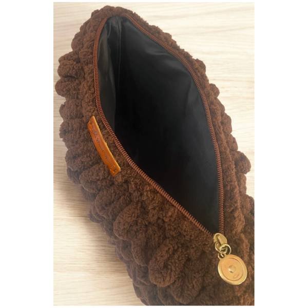Χειροποίητη πλεκτή τσάντα φάκελος puffy 30x22cm χρώμα Καφέ σκούρο-PL-118-153
