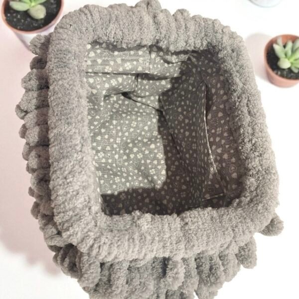 Τσάντα καρπού με έλασμα 20 εκατοστών, πλεγμένη με τα δάχτυλα, διαστάσεις 35 εκ φάρδος και 22 εκ ύψος πλάτος 11 εκ αναλόγως το γέμισμα