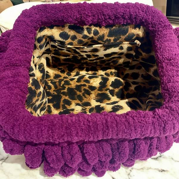 Χειροποίητη πλεκτή τσάντα Puffy χρώμα Μελιτζανί-PL-116-111