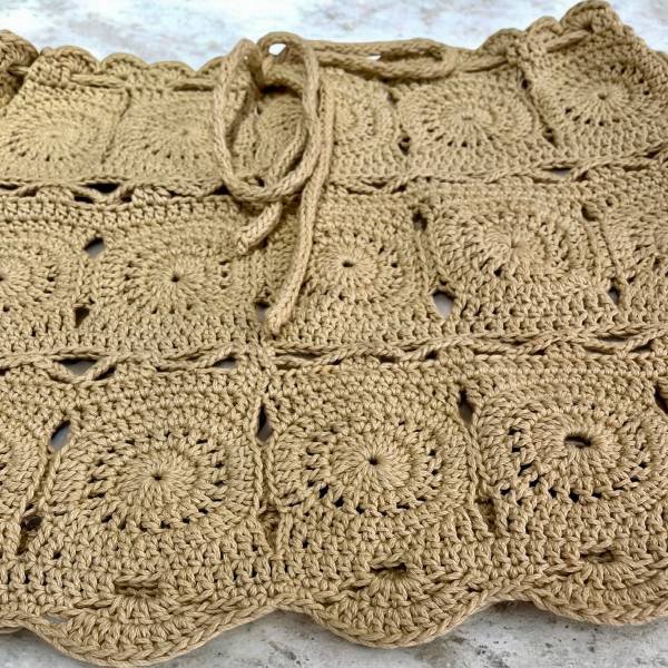 Χειροποίητη πλεκτή φούστα Μίνι με βελονάκι , χρώμα Καμηλό