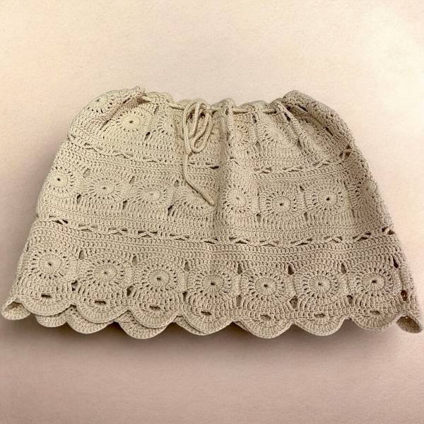 Χειροποίητη πλεκτή φούστα Μίνι με βελονάκι , χρώμα μπεζ