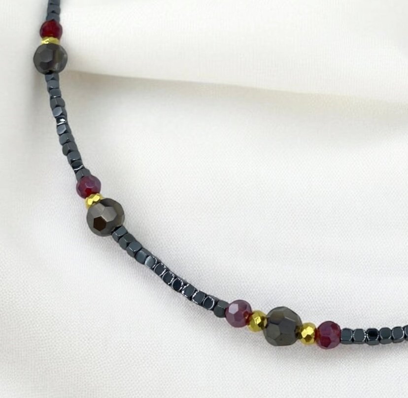 Χειροποίητο Κολιέ με πέτρες αιματίτη και ανοξείδωτο ατσάλι. χρυσό-Κ-643