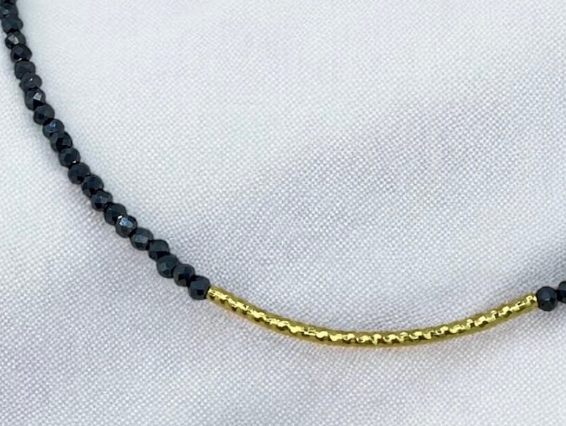 Χειροποίητο Κολιέ με πέτρες αιματίτη και ανοξείδωτο ατσάλι. χρυσό-Κ-648