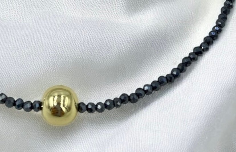 Χειροποίητο Κολιέ με πέτρες αιματίτη και ανοξείδωτο ατσάλι. χρυσό-Κ-646