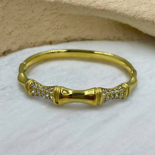 Βραχιόλι από ανοξείδωτο ατσάλι καρδιές με ζιργκον χρώμα χρυσό-BR-483